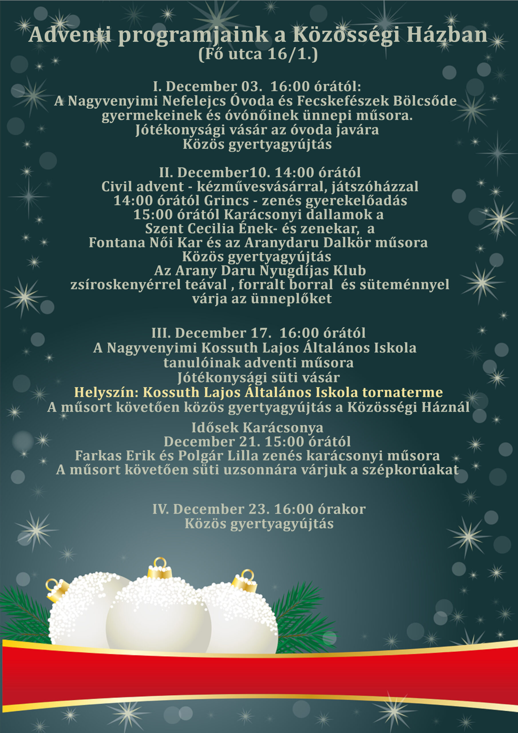 ADVENTI PROGRAMJAINK A KÖZÖSSÉGI HÁZBAN