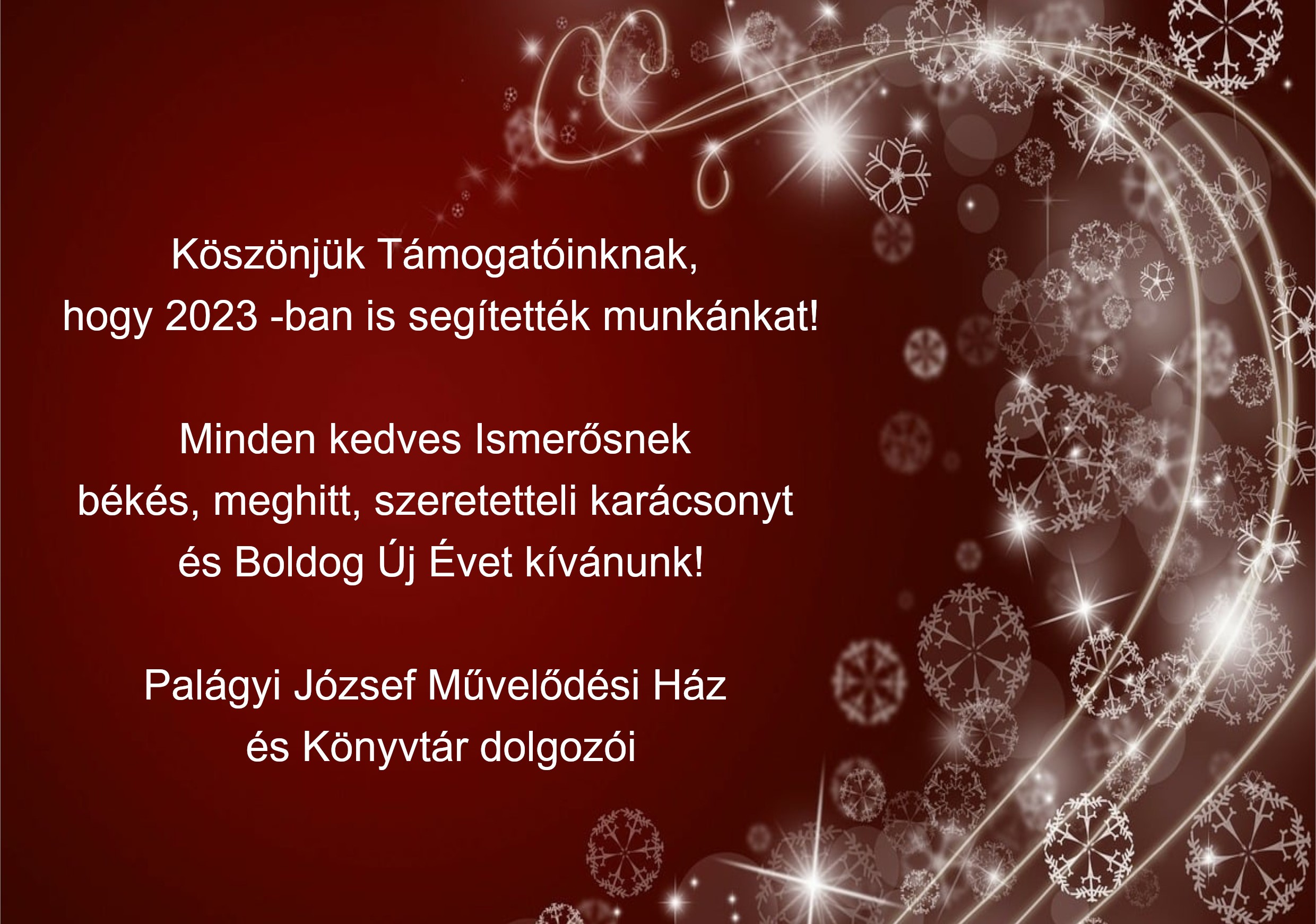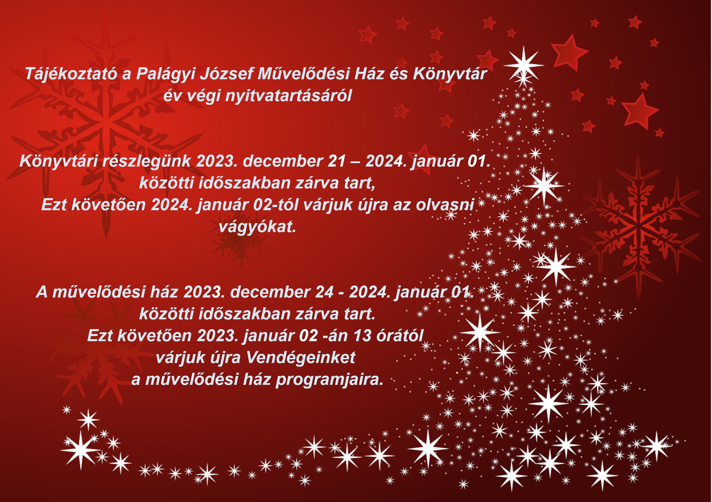 Művelődési Ház és Könyvtár év végi nyitvatartás