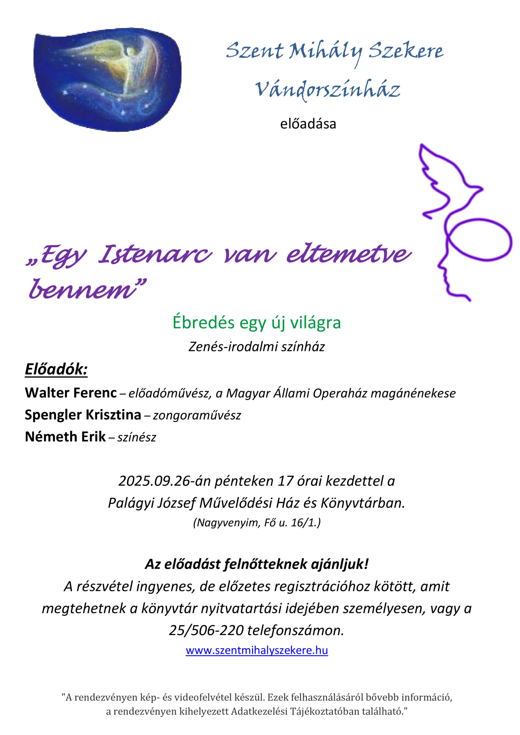 - postai úton az intézmény címére küldött levéllel (Palágyi József Művelődési Ház és Könyvtár 2421 Nagyvenyim, Fő u. 16/1.), vagy