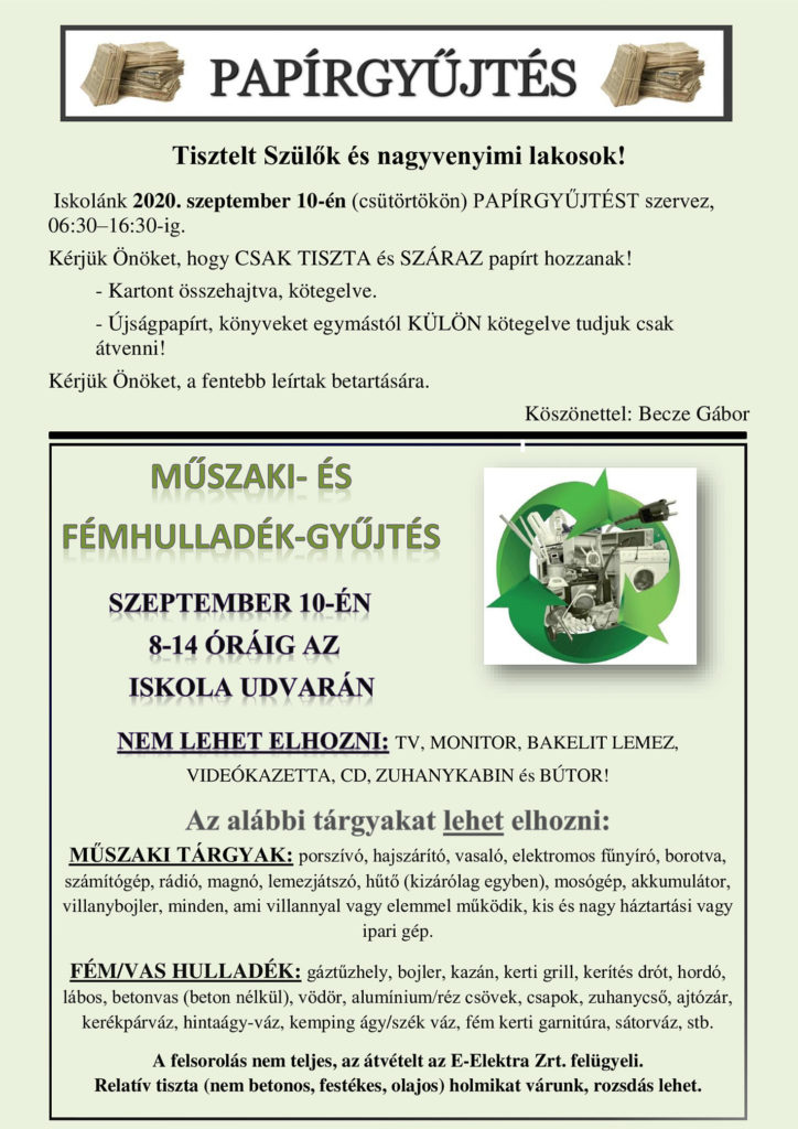 Szeretnénk felhívni figyelmüket, hogy a Mi újság Nagyvenyimen 2020. júliusi számában beharangozott „Kulináris Kavalkád és szüreti táncház a Nagyvenyimi Táncegyüttessel” című programunk, melyet 2020. szeptember 19-ére terveztünk, tekintettel a járványügyi helyzetre, ELMARAD.